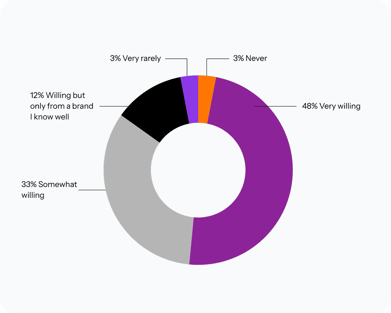 Today, however, buyers don’t seem very willing to provide their email in exchange for content. Our survey shows that less than half of buyers—48 percent—are “very willing” to provide their information in exchange for content.