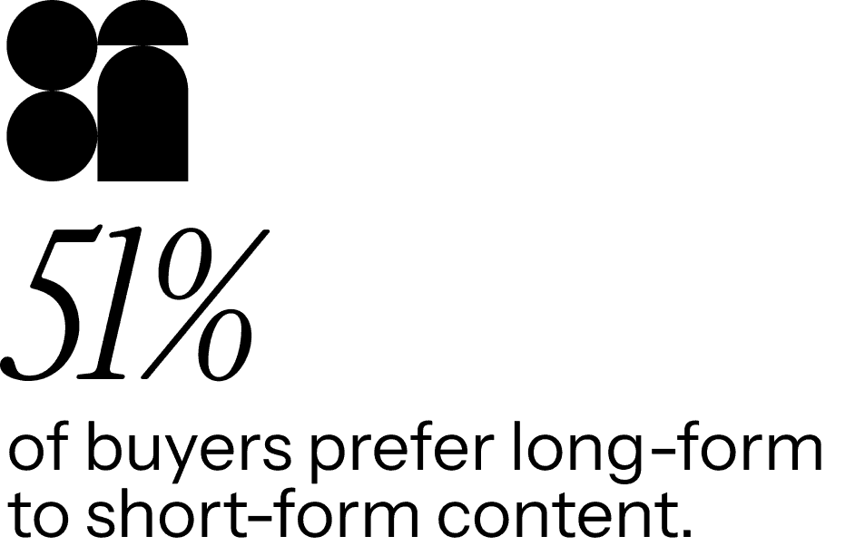 Part of that is due to the rise in video—on LinkedIn, videos autoplay right in your feed, no clicking required. This change means social media storytelling is evolving. You don’t need to link directly to a piece of content to provide substance to your buyers. You can educate them wherever they are. Actually, even on social media, 51 percent of buyers say they prefer long-form content to short-form.